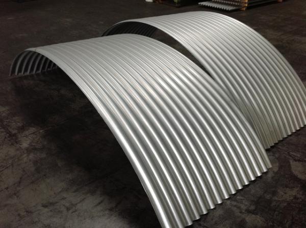 - Конструкция представлена оцинкованной сталью, которая проходит изгибание по дуге. Ее величина зависит от объекта, на котором будет монтироваться профилированный лист.