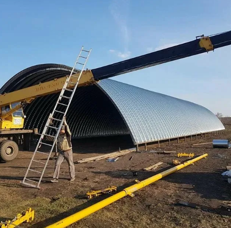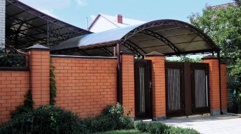 - Профнастил арочный не вызывает сложностей во время монтажа. Для этого вам потребуются только желание и небольшой набор инструментов - ножовка для металла или электроножницы и шуруповерт. Еще хотим обратить внимание на то, что для монтажа профнастила на крышу вам понадобится помощник, так как перемещать его длинные полосы одному человеку не получится;