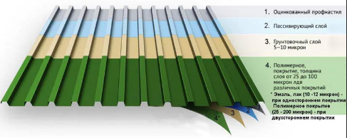 - Срок службы у арочного профлиста очень большой. Это стало возможным благодаря тому, что его делают из металлических листов, толщиной от 0,35 до 1,0 мм., которые покрыты антикоррозийным материалом. Антикоррозийное покрытие профлиста может быть цинковым, алюмоцинковым или алюмокремниевым. Благодаря этому срок службы профлиста с антикоррозийным покрытием будет не менее 5 лет и может превысить 50 лет у профлиста с дополнительным полимерным покрытием;