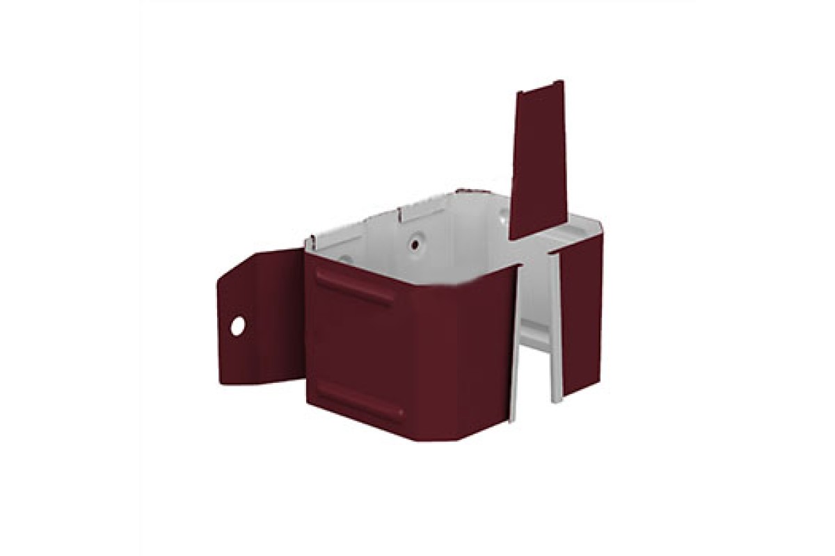 Металлическая водосточная система Держатель трубы 76х102 (на дерево) (ПЭ-01-3005-0.5) сделана из оцинкованной стали 0.5 мм толщиной. В качестве защитного барьера от механических повреждений, осадков, ультрафиолета использовано покрытие Полиэстер. Такая система подходит как для частного домостроения, так и для промышленных объектов. Она долговечна, экономична и эффективно отводит воду с кровли.