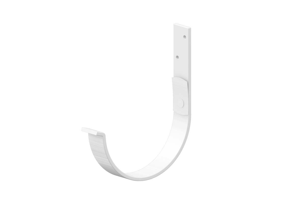 Металлическая водосточная система Держатель желоба карнизный D125х132 GS (ПО-01-9010-3) изготовлена из стали машинной оцинковки 3 мм толщиной. В качестве защитного барьера от осадков, механических воздействий, солнечного света использовано покрытие Порошковая окраска. Такая система подходит как для частного домостроения, так и для промышленных объектов. Она долговечна, экономична и эффективно отводит воду с кровли.