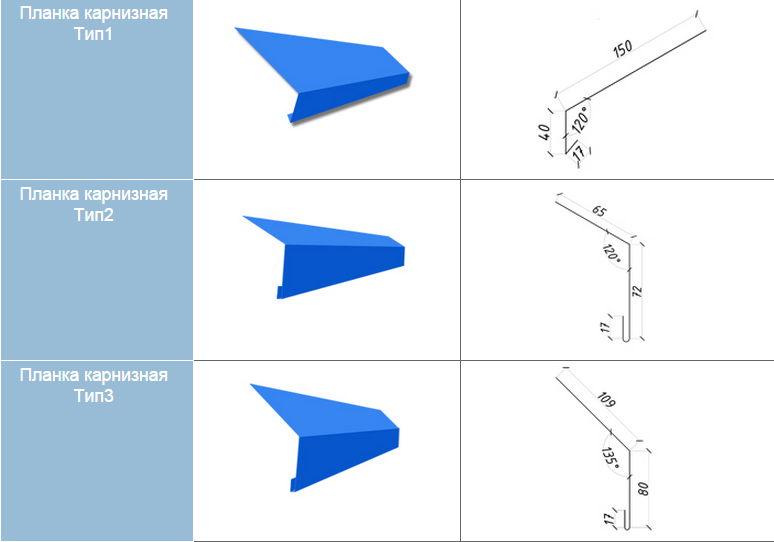 Карнизные планки для кровли бывают трех видов: