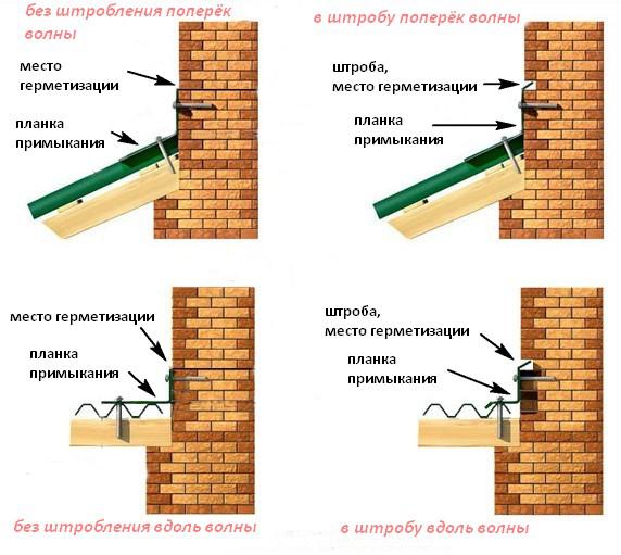 В этом вопросе действует одно правило: для герметизации стыка в месте примыкания применяют планки из материала такого вида, что и сама кровля. По технологии монтажа различают следующие типы планок: