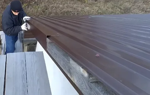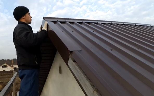 Торцевую планку начинают устанавливать, двигаясь от низа кровли к коньку.
