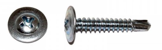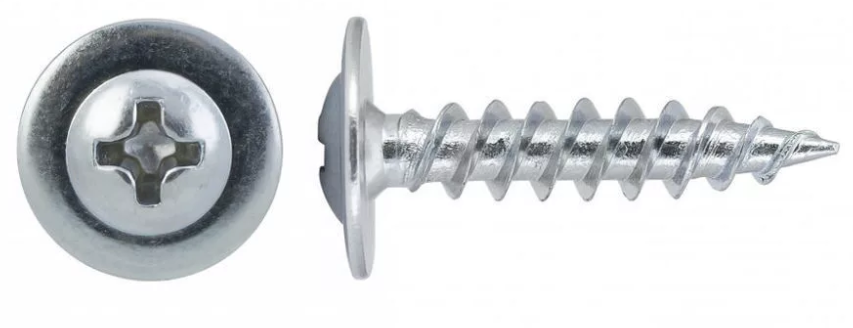 - с пресс-шайбами – саморез «металл-металл» с широкой напрессованной шайбой вокруг головки плотно прижимает прикрепляемый материал к металлическому основанию. Увеличенная площадь контакта поверхностей позволяет уменьшить усилия, действующие на тонкий металл в точке крепления. Саморезы с пресс-шайбами закручиваются с помощью крестообразных отверток или бит.