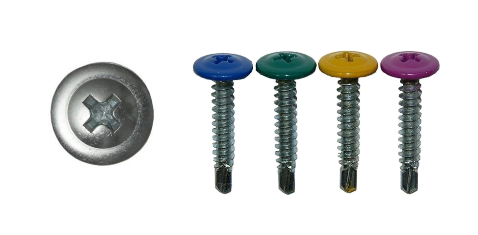 Крепёж представляет собой саморез с напрессованной шайбой, увеличивающей площадь прижима и надёжность фиксации. Оснащён полусферической головкой со шлицем Phillips № 2. Бур на конце позволяет проделывать отверстия в металле без предварительного сверления. Не подходит для потайного монтажа. Изделия, представленные в нашем каталоге, оцинкованы, что делает их устойчивыми к коррозии. Пресс-шайба может быть окрашена в любой цвет палитры RAL.
