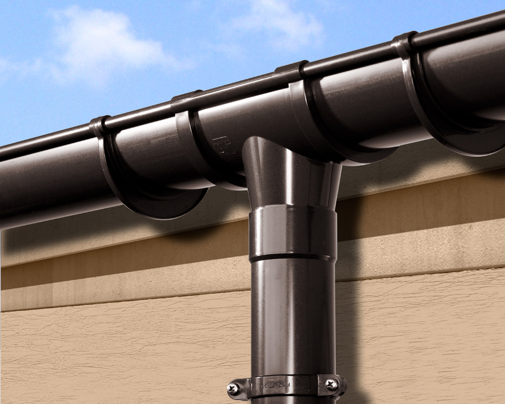 - Полукруглые желоба более сложные, ведь в нижней их части обычно находится дополнительная опора. Обычно это утолщенная часть пластика или простая конструкция из металла. Такой дополнительный элемент позволяет кронштейну отлично держать желоб, а, кроме того, обеспечить достаточно прочную фиксацию к стене.