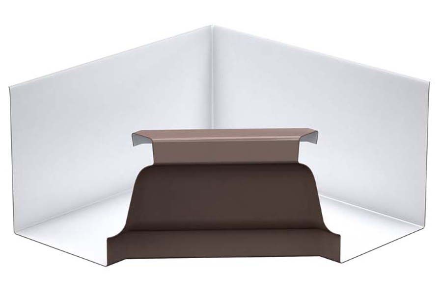 - Угол желоба внутренний используется для надежного сопряжения двух желобов между собой на углах карниза кровли с внутренней стороны.