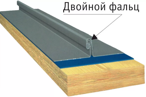 Существует несколько видов фальцев: одинарный и двойной. Двойной стоячий фальц (наиболее распространенный) обеспечивает дополнительную защиту от атмосферных воздействий.