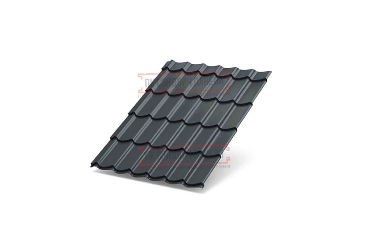 Купить металлочерепицу Супермонтеррей RAL7024 Полиэстер-0.5 под заказ по индивидуальным размерам в любом объеме.