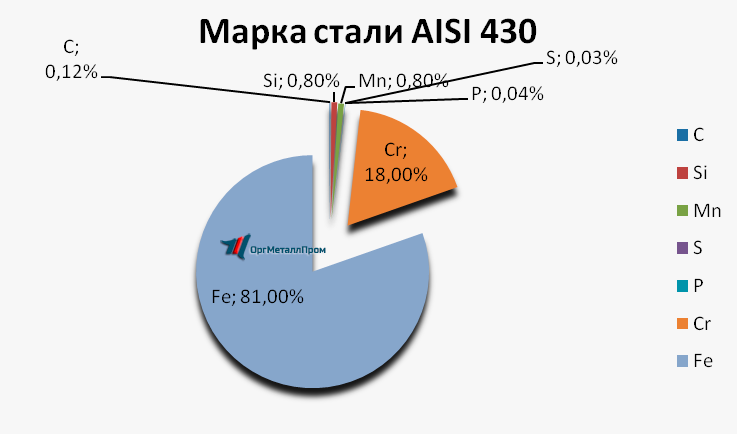 Относится к группе ферритных сталей. Характеризуется хорошей коррозионной стойкостью, высокой теплопроводностью и хорошей формовкой. Нержавеющая сталь AISI 430 часто применяется в таких областях, как автомобильные элементы и детали, кухонное оборудование, бытовые приборы и архитектурные элементы. Она также подходит для применения внутри помещений и в неагрессивных внешних условиях. Однако данная марка нержавеющей стали не рекомендуется для применения в условиях высокой загрузки или высоких температур.