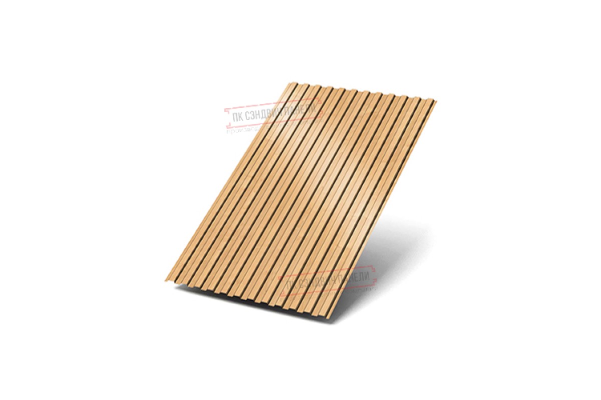 Профилированный лист МП10х1100 ECOSTEEL-Клен-0.5 — популярный материал в Колпино для обустройства фасада. Представляет собой лист оцинкованной стали толщиной 0.5 мм с покрытием. Проходя процедуру холодного проката, сталь приобретает рисунок из ритмичных волн. Жёсткость такого листа гораздо выше плоского.