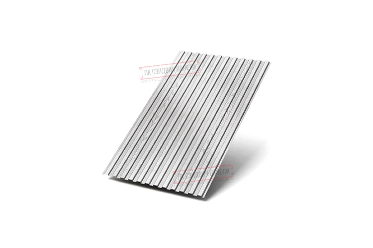 -10 – один из классических типов стенового профлиста. Он отлично подходит в виде декоративного ограждения, подвесного потолка в нежилых помещениях, стенового материала, забора, вентилируемого фасада.-10 характеризуется трапециевидной формой гребня, идентичной с обеих сторон. Высота гребня – 10 мм, что не обеспечивает металлопрокату высокой несущей способности, но при обшивке фасадов это не самое главное. В то же время лаконичный рельеф профиля не создаёт постройке брутальный облик. На технические свойства можно воздействовать, выбрав ту или иную толщину стройматериала.-10 прокатывается в версиях от 0,4 до 0,7 мм. Усилить антикоррозионную защиту позволит верхний полимерный слой. Он не только отличается насыщенным цветом, устойчивым к выгоранию на солнце, но и предотвратит мелкие механические повреждения и корродирование стальной основы.Покрытие ECOSTEEL® матовый: