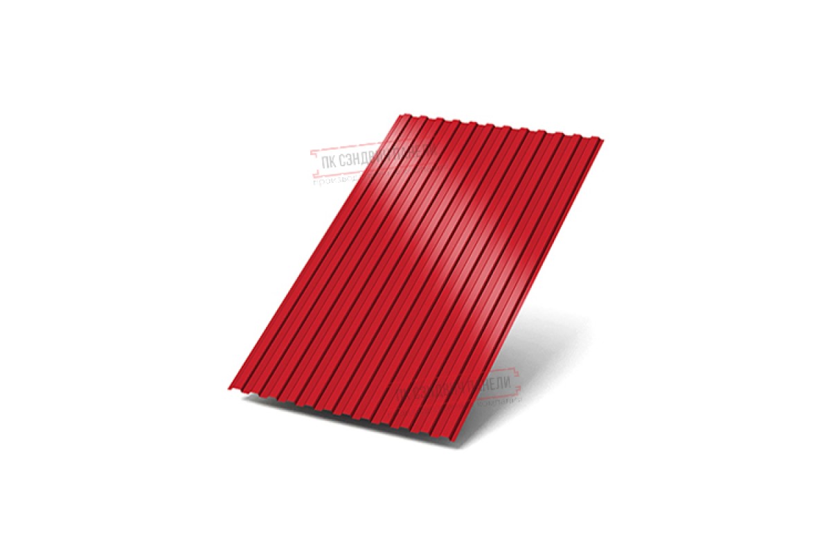Профилированный лист МП10х1100 Norman RAL-3020-0.5 — популярный материал в Колпино для оформления фасада. Представляет собой лист оцинкованной стали толщиной 0.5 мм с покрытием. После проката на специальном оборудовании сталь приобретает рисунок из ритмичных волн. Несущая способность профилированного листа на порядок выше плоского.
