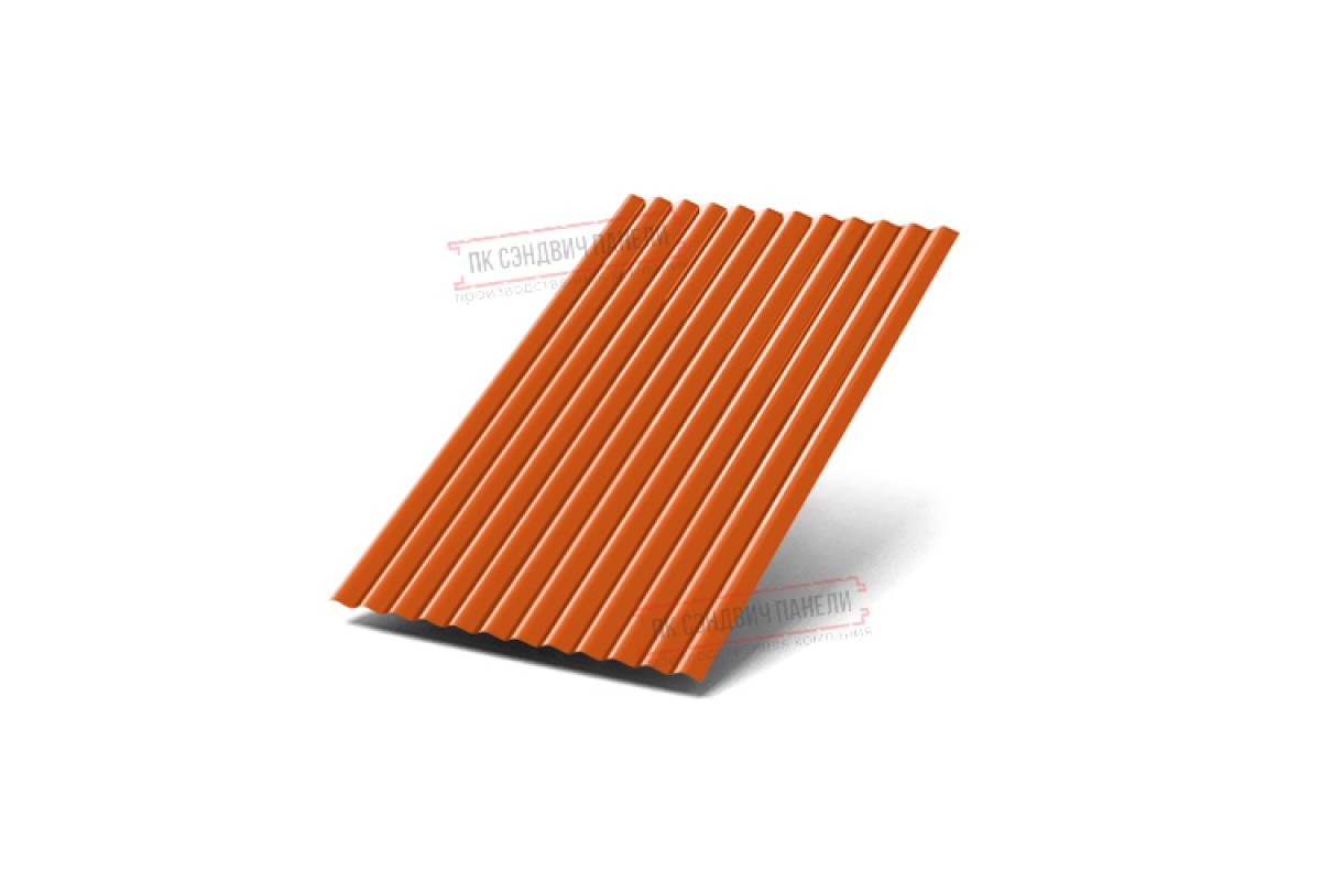 Профлист-18 выделяется на фоне прочих марок этого стройматериала оригинальной матрицей. Это уникальной профиль с мягкими волнами. Волнообразный вид гофры делает этот профиль отличным материалом для вентилируемых фасадов, установки ограждений, перегородок в промышленных строениях. Специально для этого профлиста Компания МеталлПрофиль делает отделочные элементы скруглённой формы, которые позволяют оформлять внешние и внутренние углы зданий, придавая им необычный облик. Профиль обладает средней высотой 18 мм и довольно приличной полезной шириной листов – 1100 мм.-18 выпускается из оцинкованной стали толщиной от 0,4 до 0,7 мм. А добавление защитного слоя не только значительно расширяет возможности дизайнеров, но и усиливает стойкость профлиста к появлению ржавчины, а значит, увеличивает срок службы. Всё это делает-18 стильным и экономически выгодным стройматериалом.Покрытие Полиэстер: