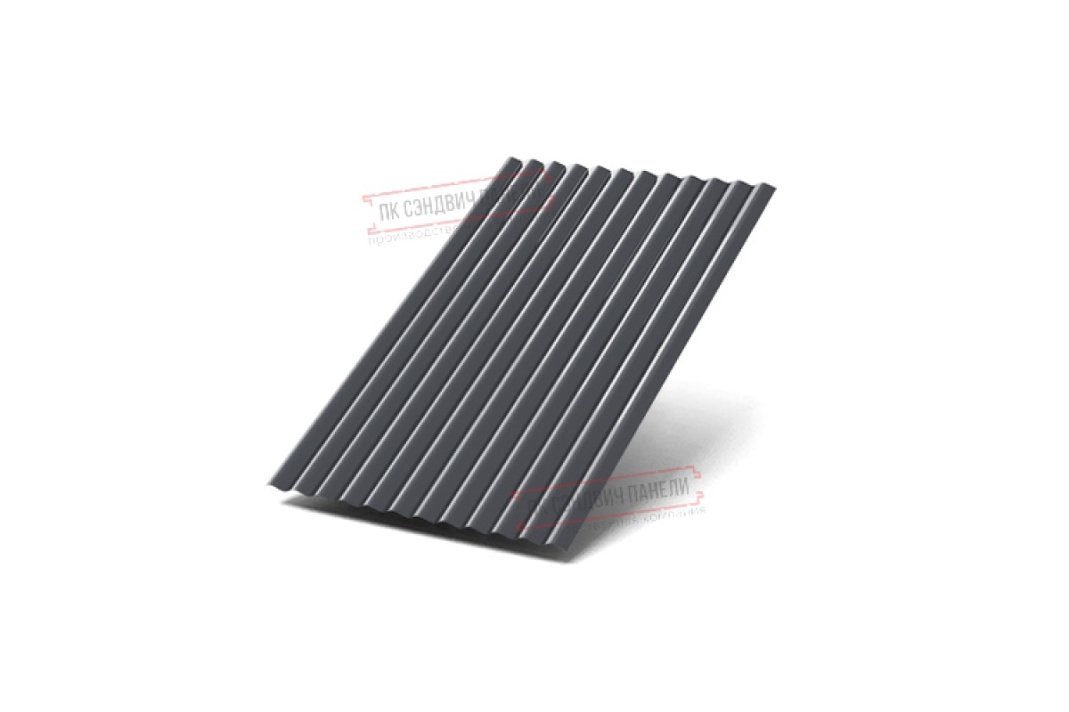 Профилированный лист МП18х1100 Полиэстер двусторонний RAL-70247024-0.45 — популярный материал в Колпино для монтажа фасада. Представляет собой стальной оцинкованный лист толщиной 0.45 мм с покрытием. Проходя процедуру холодного проката, сталь приобретает рисунок из повторяющихся волн. Такая форма придает профилю несущую способность.