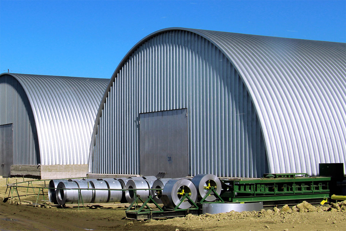Арочный гнутый профнастил активно используют для возведения промышленных зданий за ограниченный промежуток времени. Гнутый профилированный лист отлично подходит для строительства: