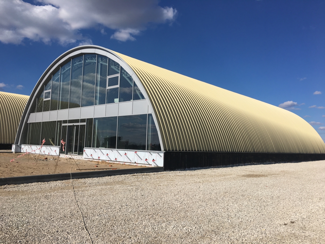 Зернохранилища, фермы, выставочные павильоны, склады, ангары и другие промышленные сооружения часто имеют сводчатую конструкцию — это снижает ветровую нагрузку и удешевляет строительство. Для возведения таких строений обычно используют арочный профнастил самонесущий Н112ПГ для бескаркасных ангаров.