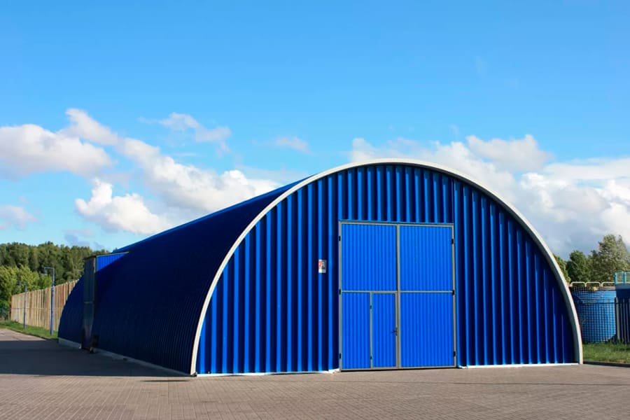Строительство бескаркасных арочных ангаров позволяет существенно сэкономить финансы на материале, а также уменьшить трудозатраты при их возведении. За счет легкости конструкции и отсутствия несущих металлических элементов на фундамент не приходится большая нагрузка.