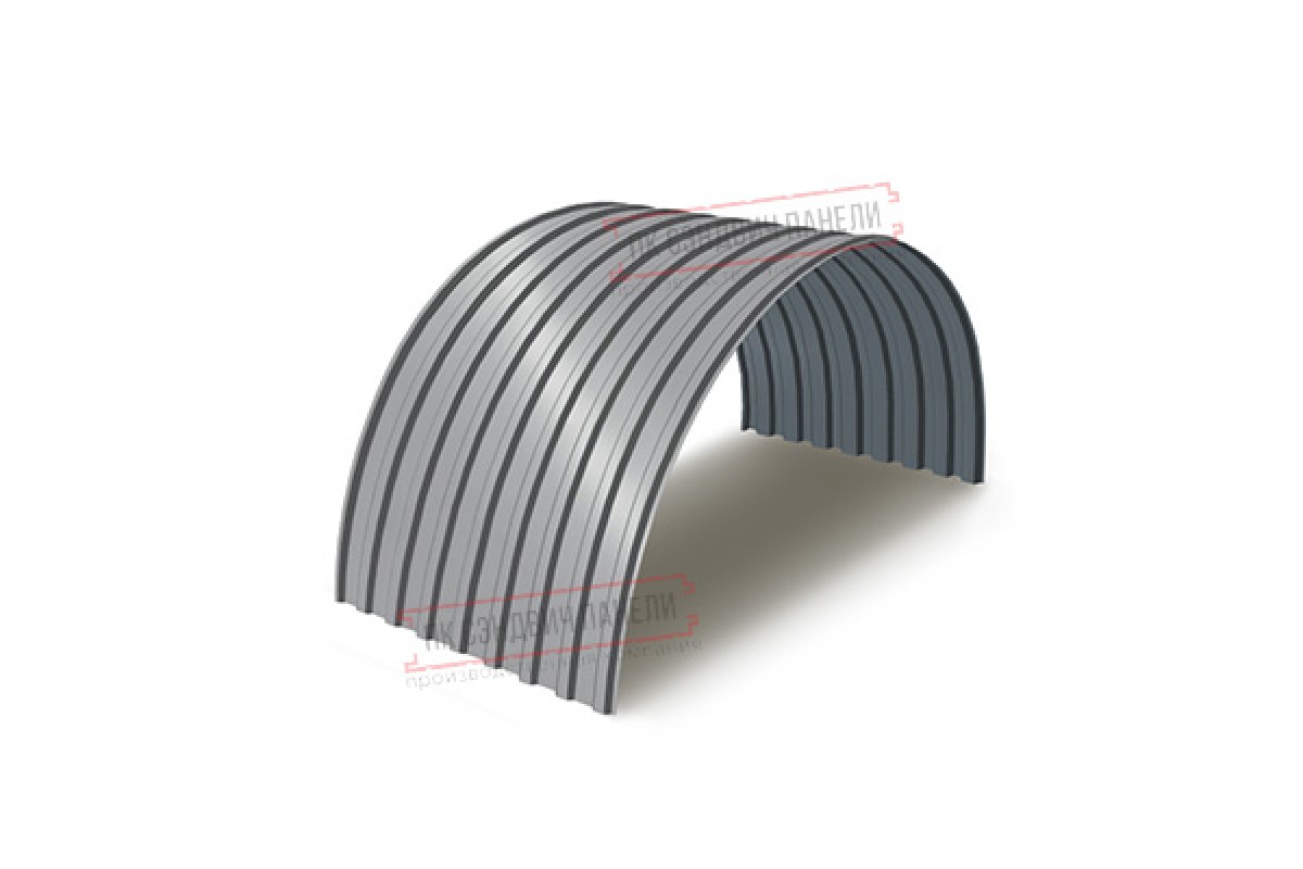 Арочный профнастил МП20ПГ-0.45 в цвете RAL 7004 (сигнально-серый) представляет собой практичное и универсальное решение для создания современных и функциональных арочных конструкций. Профиль МП20ПГ с высотой волны 20 мм специально разработан для холодного гиба, что позволяет легко формировать прочные и эстетичные криволинейные поверхности. Изготовленный из высококачественной оцинкованной стали толщиной 0.45 мм, материал обладает исключительной стойкостью к коррозии и способен выдерживать значительные нагрузки. Полиэстерное покрытие не только придает профнастилу нейтральный и универсальный серый цвет, но и служит надежной защитой от воздействия ультрафиолета, атмосферных осадков и механических повреждений, гарантируя сохранение первоначального вида и эксплуатационных свойств на долгие годы. Общая ширина листа 1100 мм обеспечивает оптимальный расход материала и удобство монтажа на больших площадях. Арочная форма, которую можно создать из этого профнастила, значительно увеличивает несущую способность конструкции, позволяя перекрывать обширные пролеты без необходимости в массивных внутренних опорах, что делает его идеальным выбором для широкого спектра зданий.