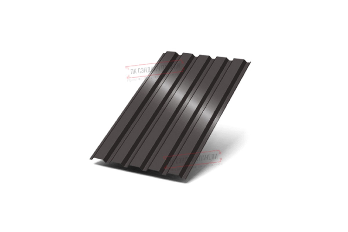 Профнастил с высотой гофры 35 мм. Обладает ровными полками, без добавочных рёбер жёсткости. Однако сама конструкция профиля с чередованием широких нижних и узких верхних полок обеспечивает данному профнастилу хорошую прочность на изгиб и устойчивость к скручиванию. За счёт своих эксплуатационных качеств, этот профлист с успехом используется в различных сферах. Чаще всего это: оборудование внутренних перегородок в индустриальных зданиях, создание щитовых сооружений, перекрытие кровли, обшивка наружных стен, установка заборов, заливка фундамента в виде армирующего элемента .-35 отличается небольшим весом, что значительно упрощает его перевозку и монтаж. Исходя из области использования гофрированного листа, вы можете заказать необходимую толщину металлопроката – от 0,45 до 0,9 мм.Покрытие :