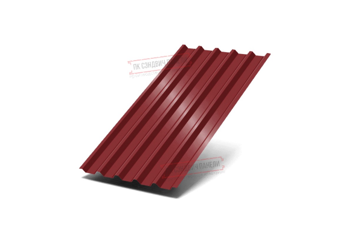 Профнастил С44-1000 Полиэстер RAL-3011-0.45 широко применяется в Колпино для монтажа кровли. Изначально он представляет собой стальной оцинкованный лист толщиной 0.45 мм с покрытием. После проката на специальном оборудовании металл принимает волнообразный вид. Несущая способность профилированного листа на порядок выше плоского.