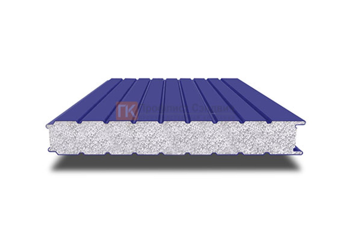 Купить сэндвич-панель для холодильных камер с пенополистиролом, ширина 1200 мм, толщина 100 мм, 0.5/0.5, RAL5002 под заказ по индивидуальным размерам в любом объеме.