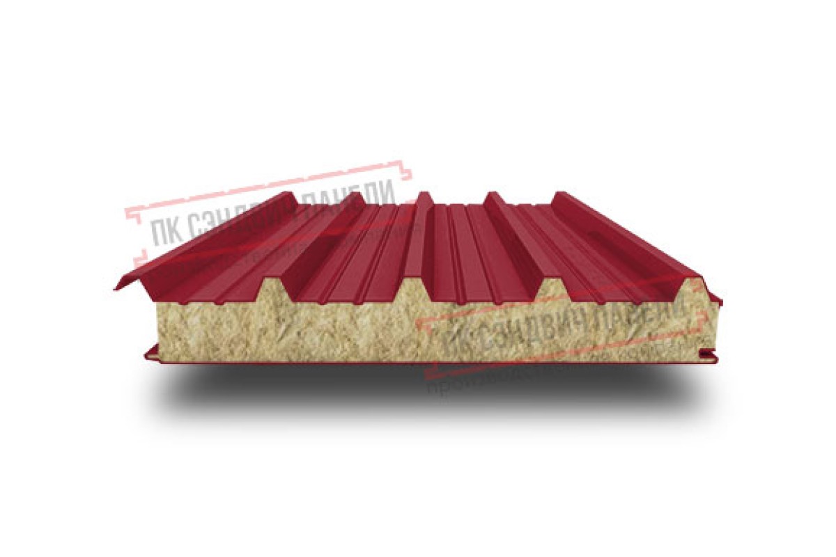 Купить сэндвич панель акустическую кровельную с минеральной ватой, ширина 1200 мм, толщина 60 мм, 0.5/0.5, RAL3003 в лучшем соотношении цена-качество без посредников и переплат.