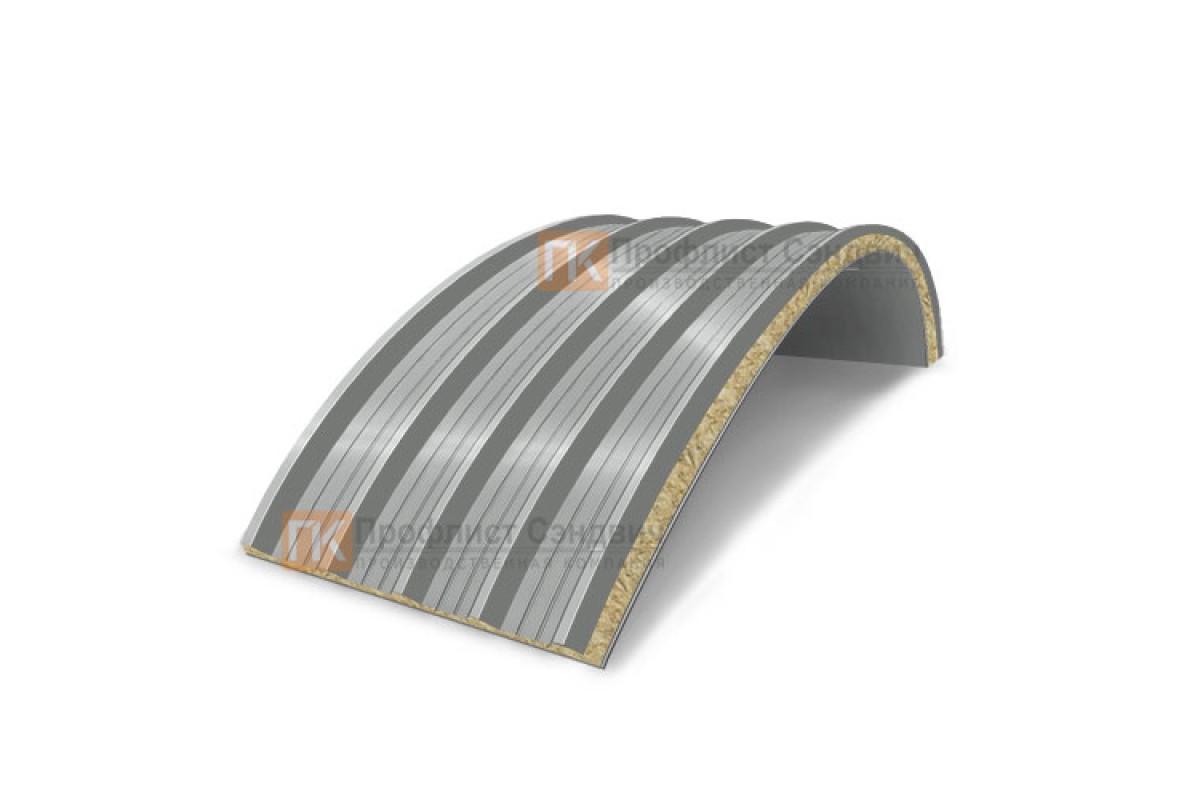 Купить сэндвич-панели арочные с минеральной ватой, ширина 1000 мм, толщина 200 мм, 0.5/0.5, RAL9006 по наиболее выгодной цене оптом и в розницу.