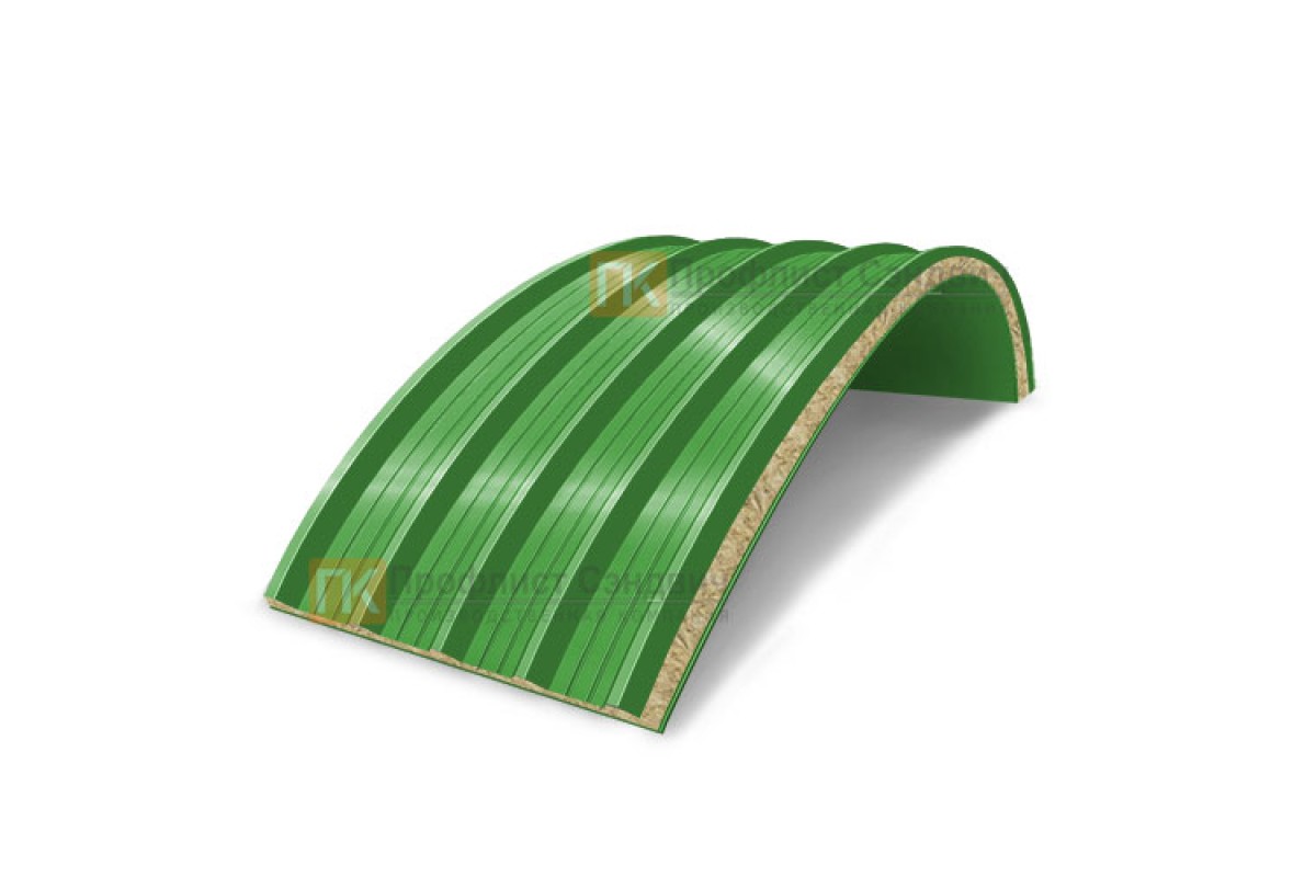 Купить сэндвич-панели арочные с минеральной ватой, ширина 1200 мм, толщина 50 мм, 0.5/0.5, RAL6018 с гарантией качества оптом и в розницу.