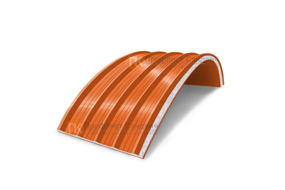 Купить сэндвич-панели арочные с пенополистиролом, ширина 1000 мм, толщина 200 мм, 0.5/0.5, RAL2004 по наиболее выгодной цене оптом и в розницу.