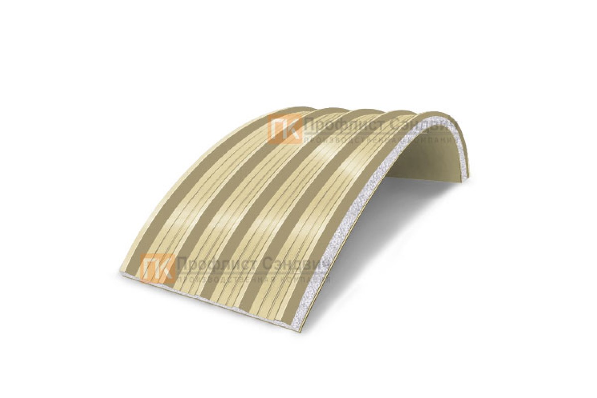 Купить сэндвич-панели арочные с пенополистиролом, ширина 1000 мм, толщина 250 мм, 0.5/0.5, RAL1014 по наиболее выгодной цене оптом и в розницу.
