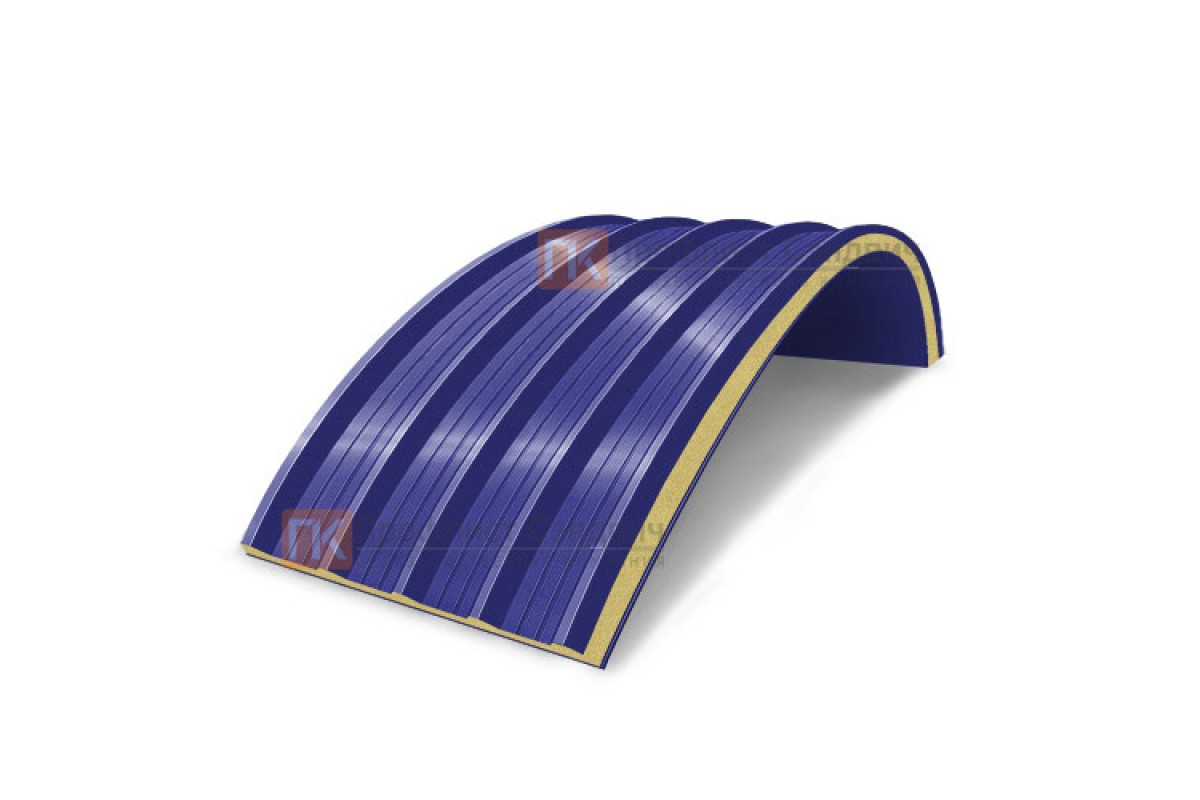 Купить сэндвич-панели арочные с пенополиуретаном, ширина 1000 мм, толщина 150 мм, 0.5/0.5, RAL5002 по закупочным ценам. 100% выгодно!