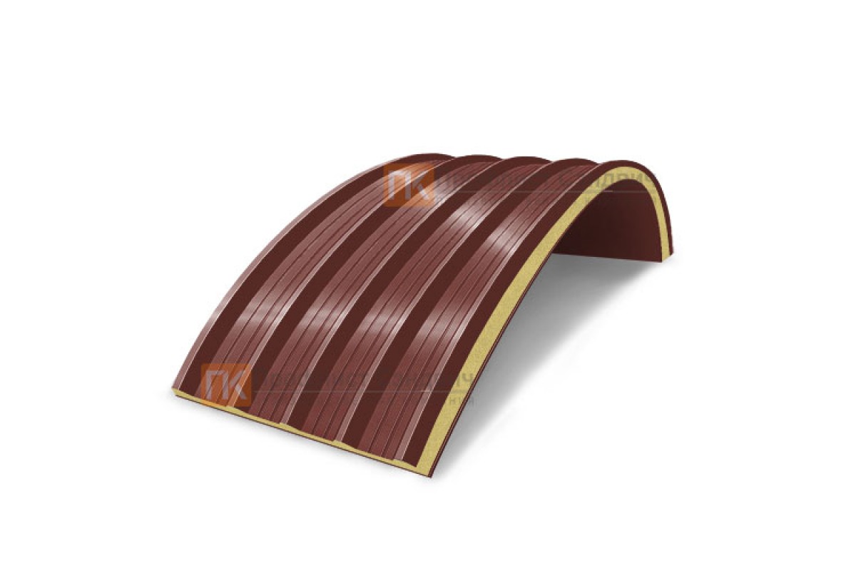 Купить сэндвич-панели арочные с пенополиуретаном, ширина 1000 мм, толщина 200 мм, 0.5/0.5, RAL3009 по закупочным ценам. 100% выгодно!