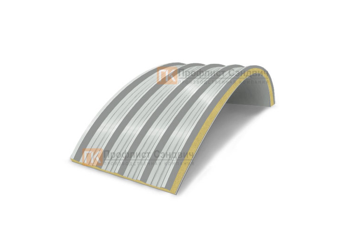 Купить сэндвич-панели арочные с пенополиуретаном, ширина 1000 мм, толщина 60 мм, 0.5/0.5, RAL7047 под заказ по индивидуальным размерам в любом объеме.