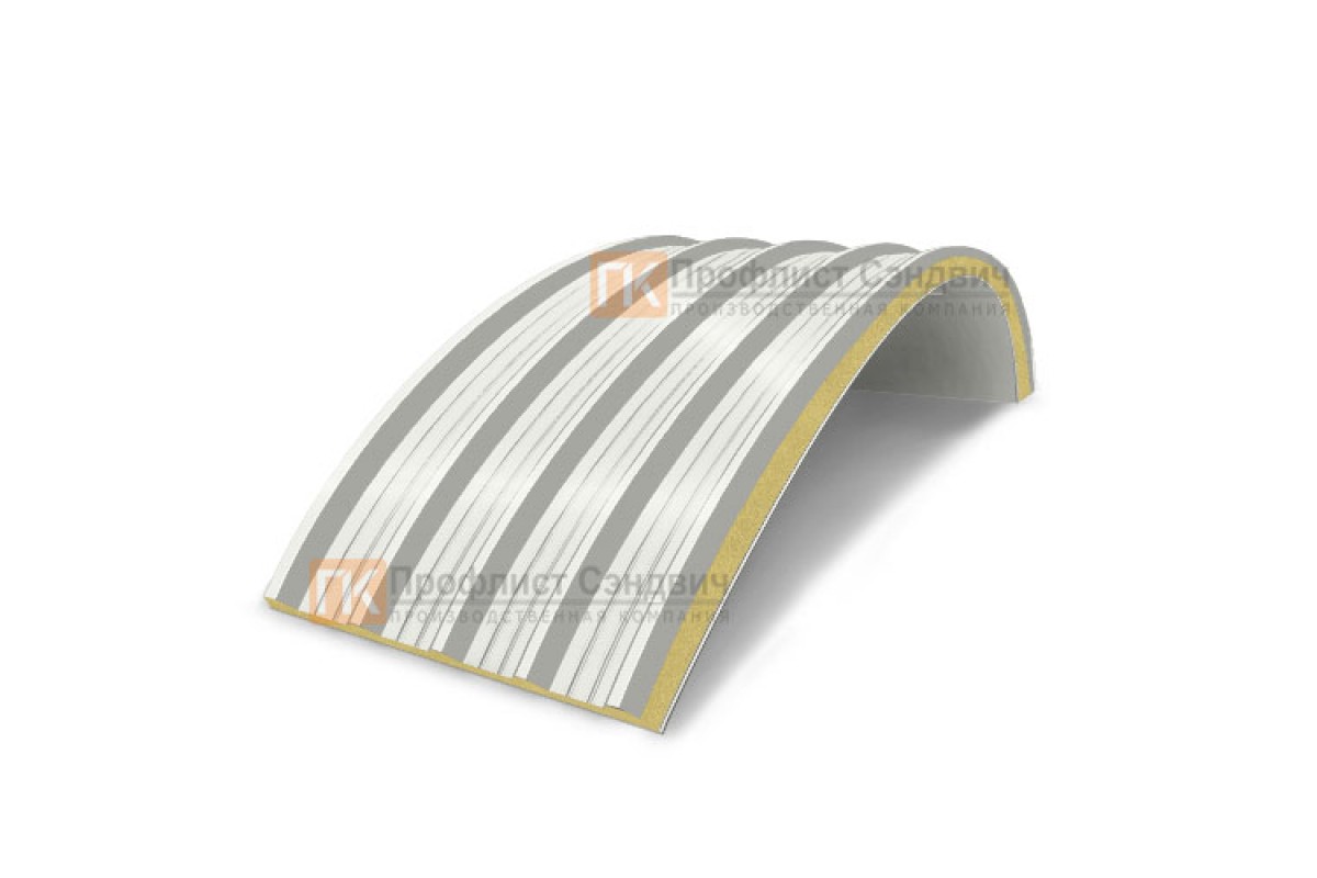 Купить сэндвич-панели арочные с пенополиуретаном, ширина 1000 мм, толщина 80 мм, 0.5/0.5, RAL9003 недорого. Нижайшие цены! От производителя.