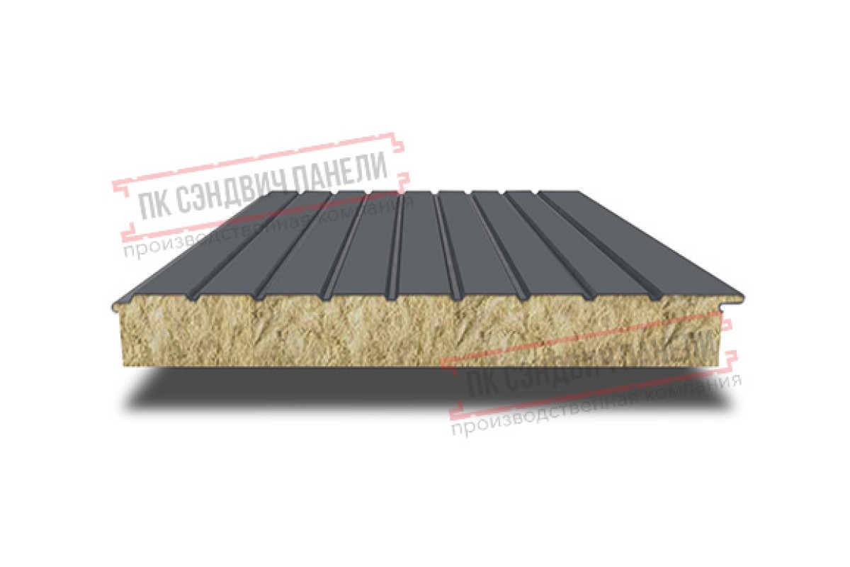 Купить сэндвич-панели двухслойные с минеральной ватой, ширина 1000 мм, толщина 10 мм, 0.5, RAL7024 по самым низким ценам среди всех предложений
