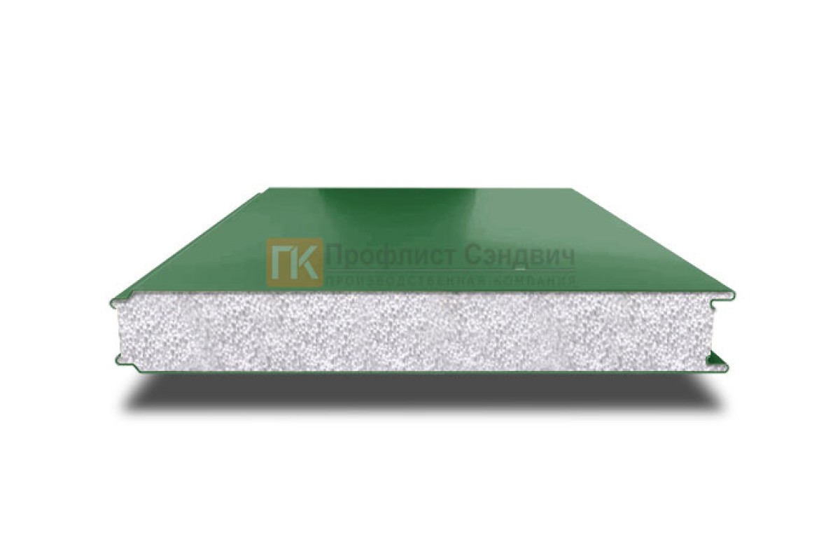 Купить сэндвич панели гладкие с пенополистиролом, ширина 1000 мм, толщина 250 мм, 0.5/0.5, RAL6002 по закупочным ценам. 100% выгодно!