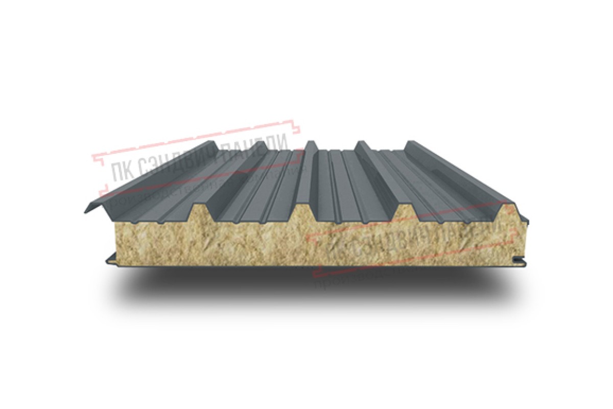 Купить сэндвич панели кровельные с минеральной ватой, ширина 1000 мм, толщина 10 мм, 0.5/0.5, RAL7011 по лучшей цене от лучшего производителя в широком разнообразии.