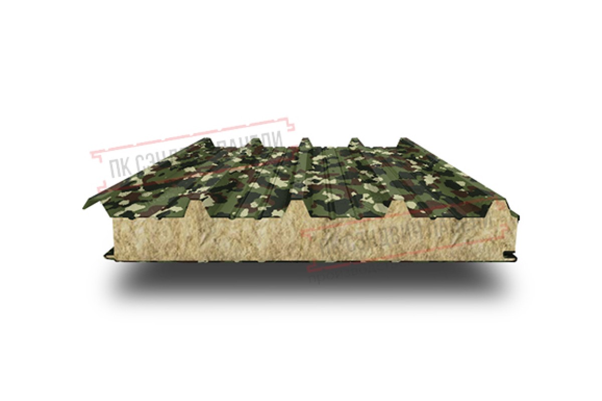 Купить сэндвич панели кровельные с минеральной ватой, ширина 1000 мм, толщина 140 мм, 0.5/0.5, милитари с гарантией качества оптом и в розницу.