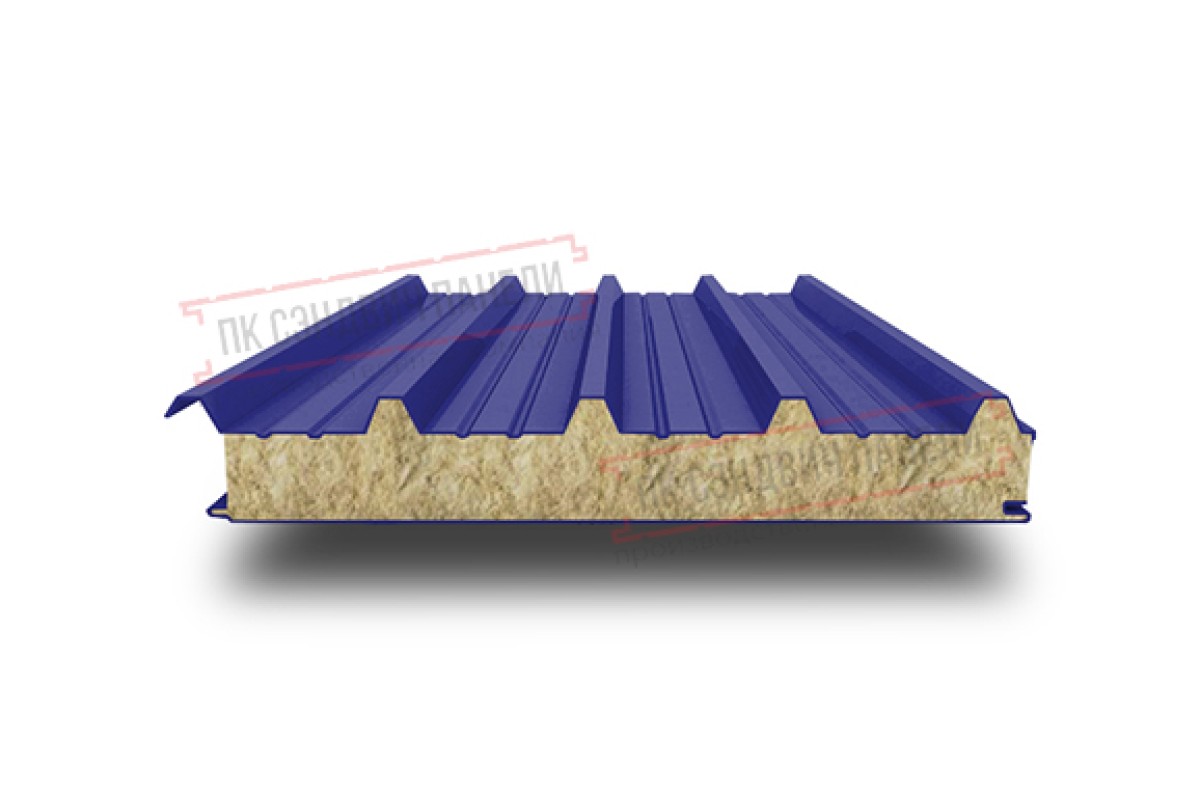 Купить сэндвич панели кровельные с минеральной ватой, ширина 1000 мм, толщина 20 мм, 0.5/0.5, RAL5002 под заказ по индивидуальным размерам в любом объеме.