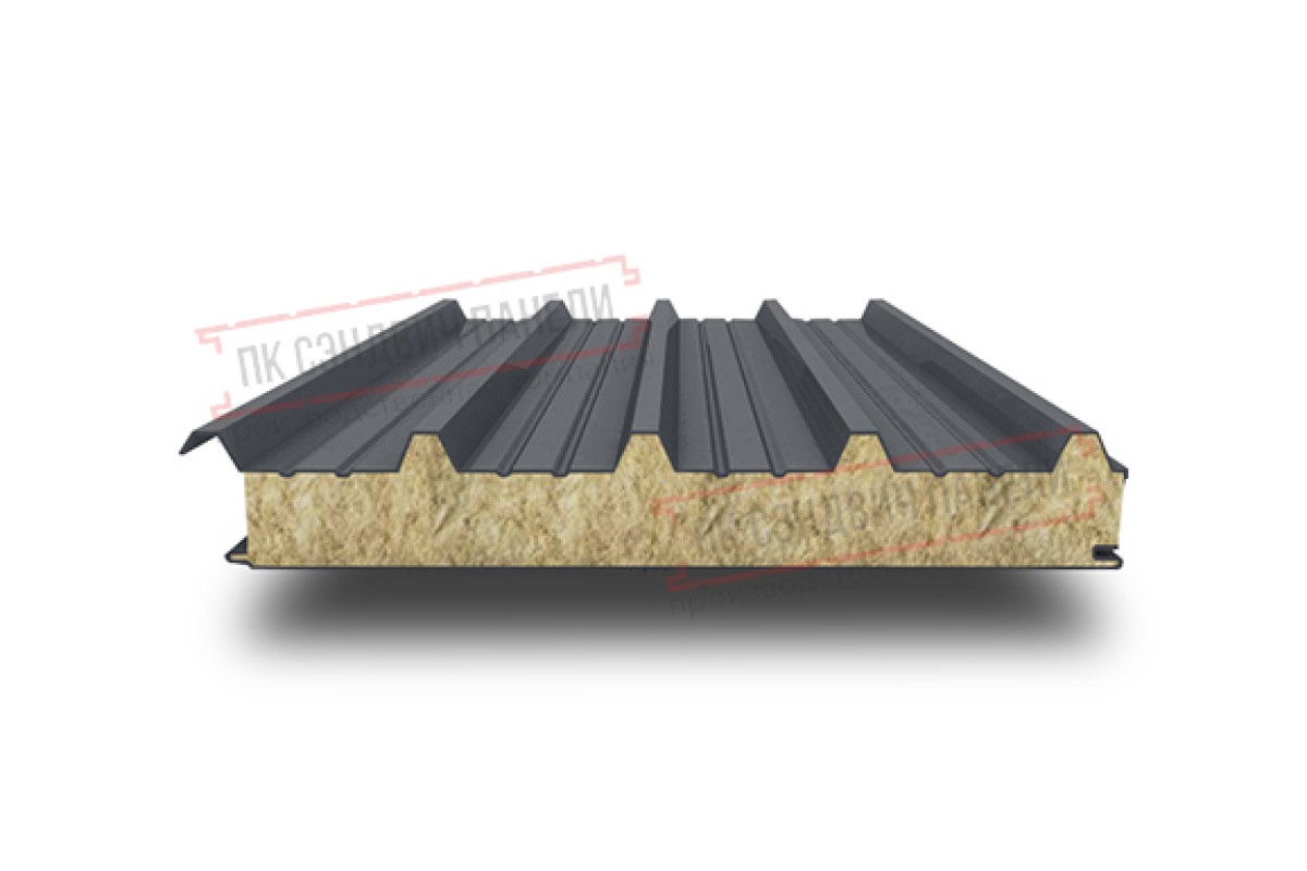 Купить сэндвич панели кровельные с минеральной ватой, ширина 1000 мм, толщина 20 мм, 0.5/0.5, RAL7024 в любом объеме с удобной формой оплаты.