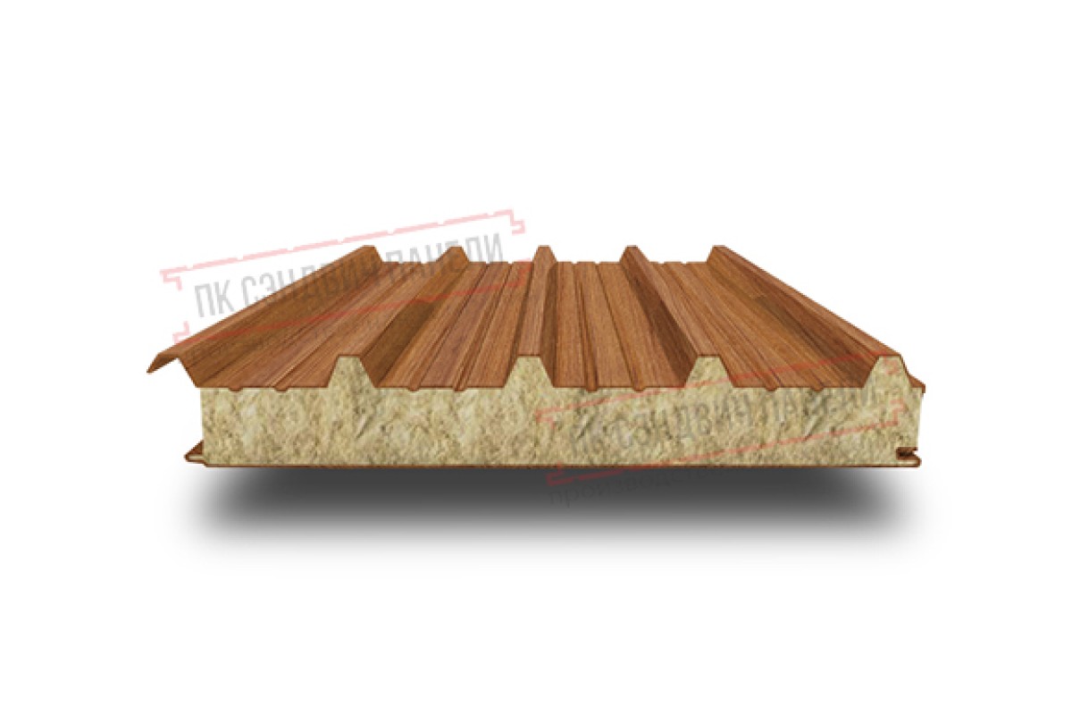 Купить кровельные сэндвич панели с минватой 80 орех по умеренной цене.