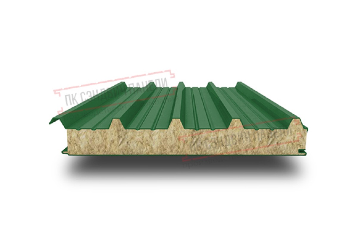 Купить сэндвич панели кровельные с минеральной ватой, ширина 1200 мм, толщина 140 мм, 0.5/0.5, RAL6002 в любом объеме с удобной формой оплаты.