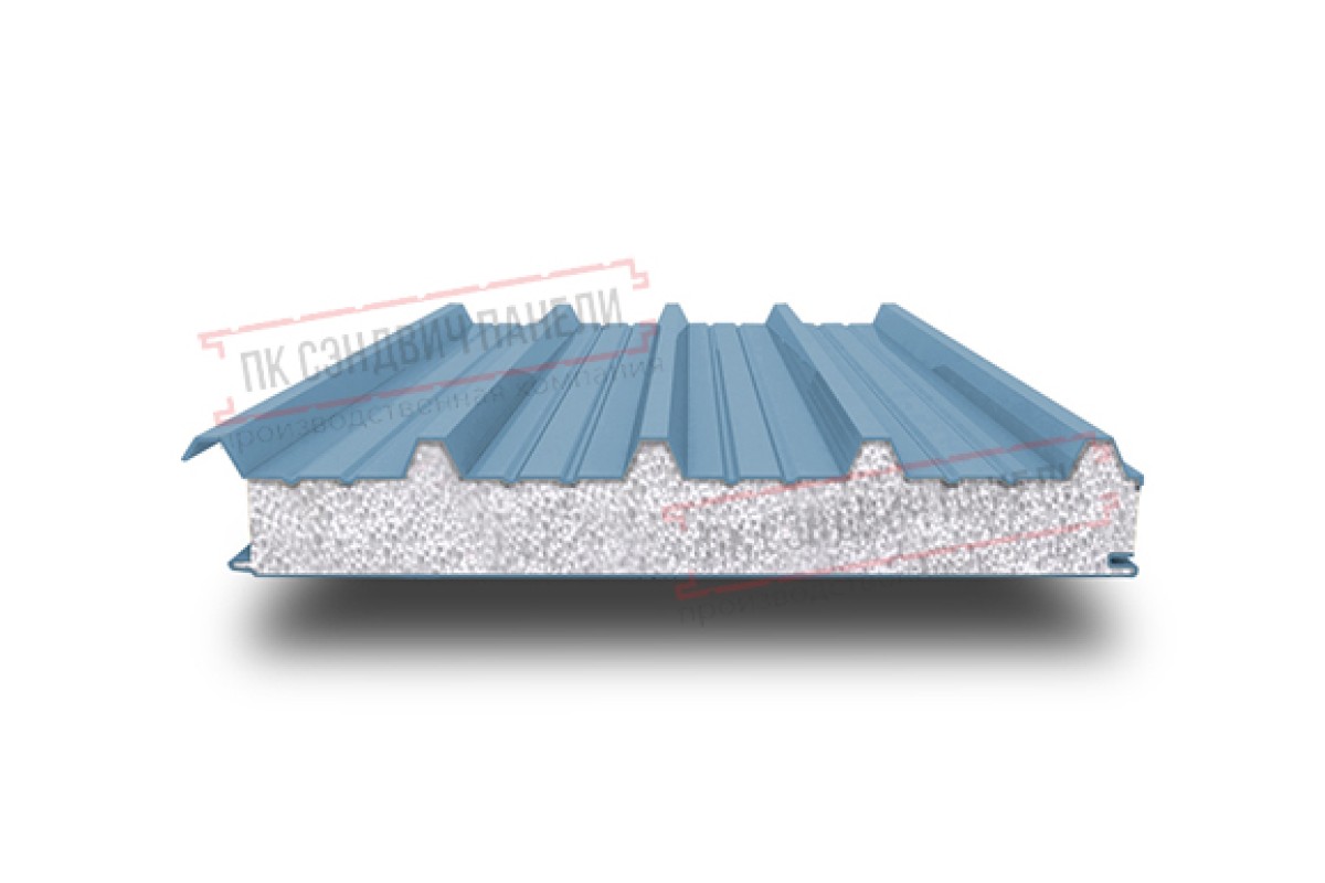Купить сэндвич панели кровельные с пенополистиролом, ширина 1000 мм, толщина 140 мм, 0.5/0.5, RAL5024 качественно и недорого по цене производителя.