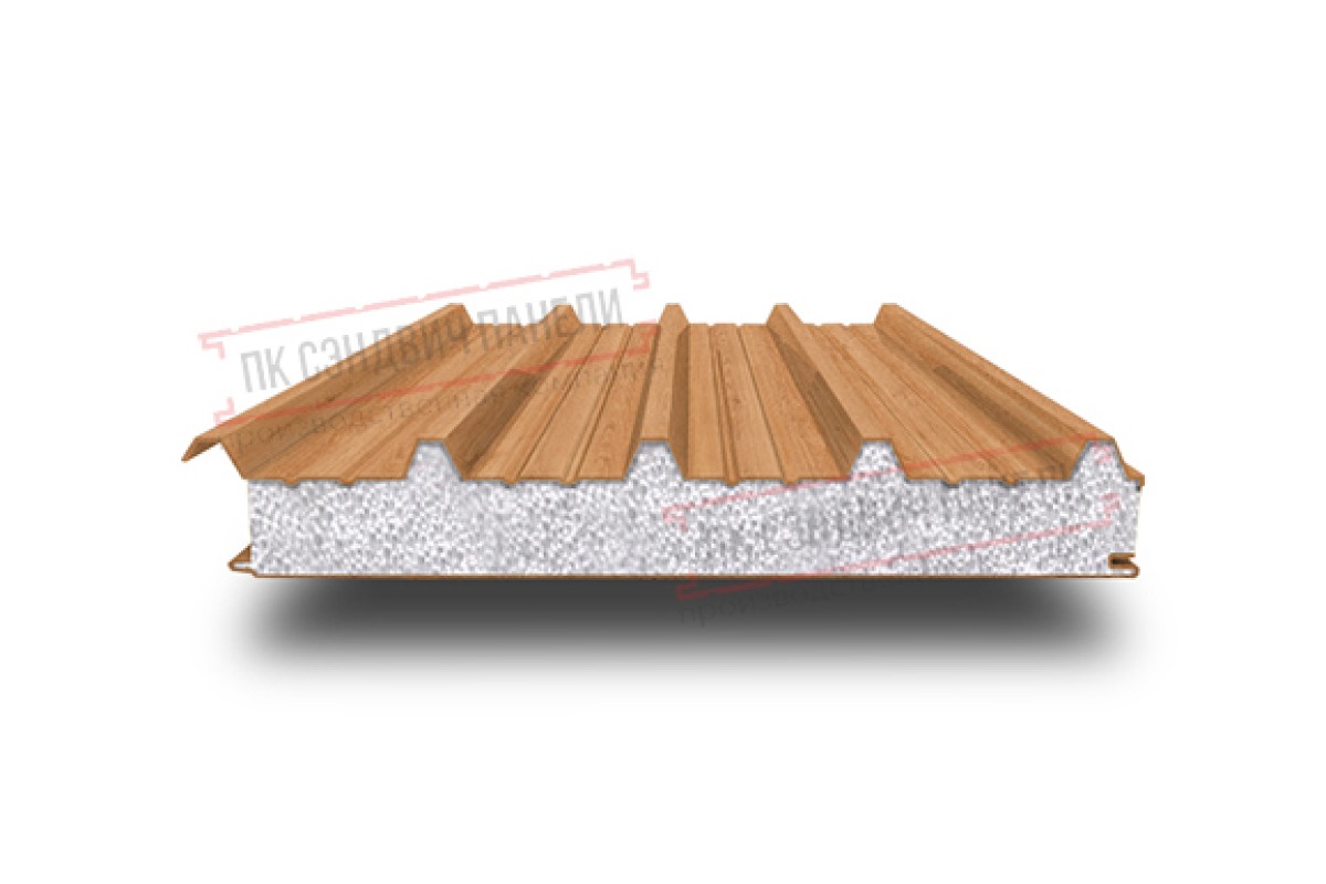 Купить сэндвич панели кровельные с пенополистиролом, ширина 1200 мм, толщина 140 мм, 0.5/0.5, дуб по выгодной цене в широком ассортименте от производителя.