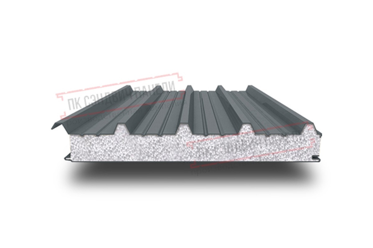 Купить сэндвич панели кровельные с пенополистиролом, ширина 1200 мм, толщина 30 мм, 0.5/0.5, RAL7011 в любом объеме с удобной формой оплаты.