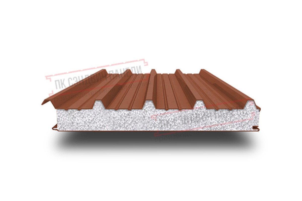 Купить сэндвич панели кровельные с пенополистиролом, ширина 1200 мм, толщина 30 мм, 0.5/0.5, RAL8004 по лучшей цене от лучшего производителя в широком разнообразии.