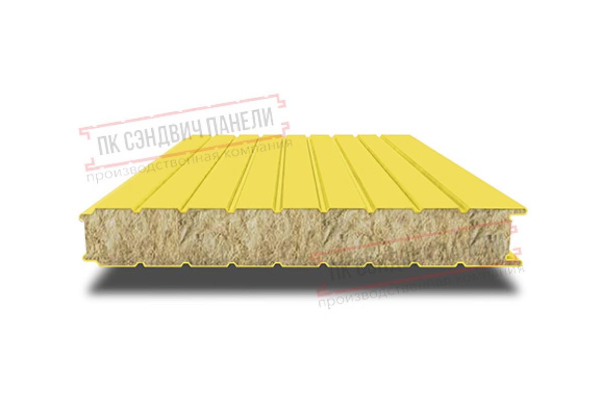 Купить сэндвич панели стеновые с минеральной ватой, ширина 1200 мм, толщина 160 мм, 0.5/0.5, RAL1018 под заказ по индивидуальным размерам в любом объеме.