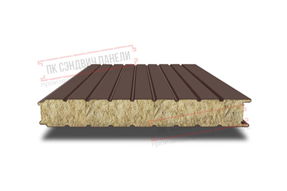 Купить сэндвич панели стеновые с минеральной ватой, ширина 1200 мм, толщина 80 мм, 0.5/0.5, RAL8017 под заказ по индивидуальным размерам в любом объеме.